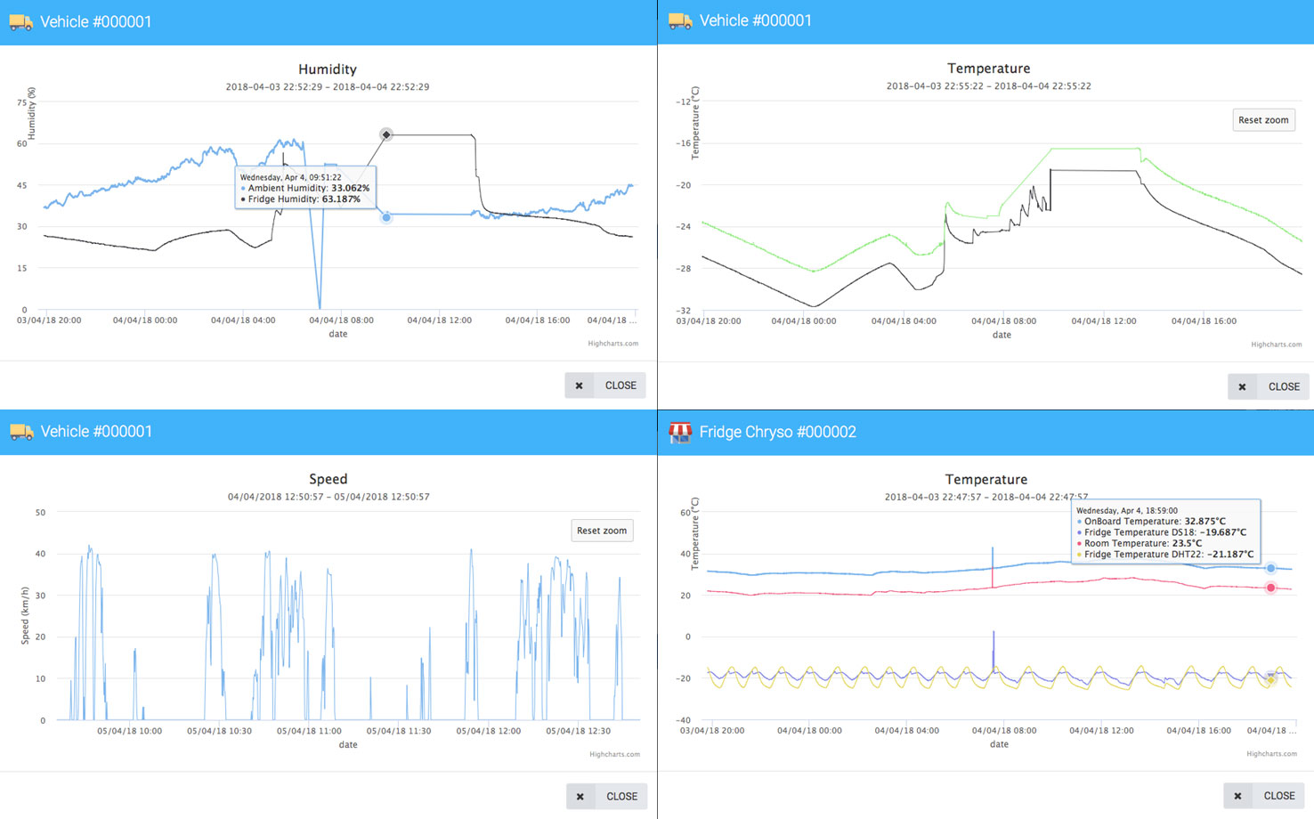 MyFleetLive™ also enables transportable, consumable and perishable products or dangerous cargo to “tell” their whole-journey experience from production to consumption, through the monitoring and collection of sensor data (called “sensourcing”) from all freight legs. Using sensors installed in the vehicle, the transport conditions are recorded. Then quality indicators are computed and associated with every single transported product.